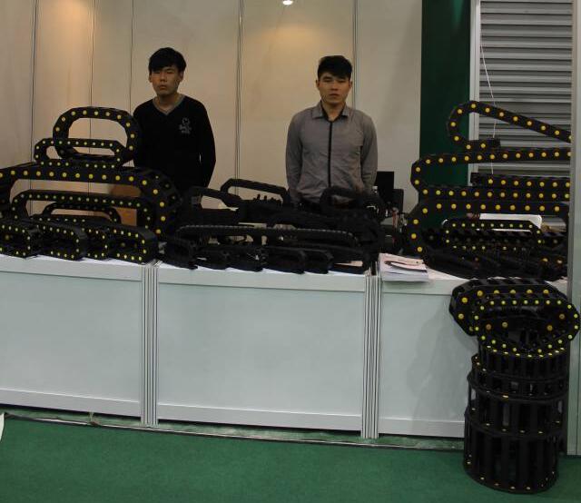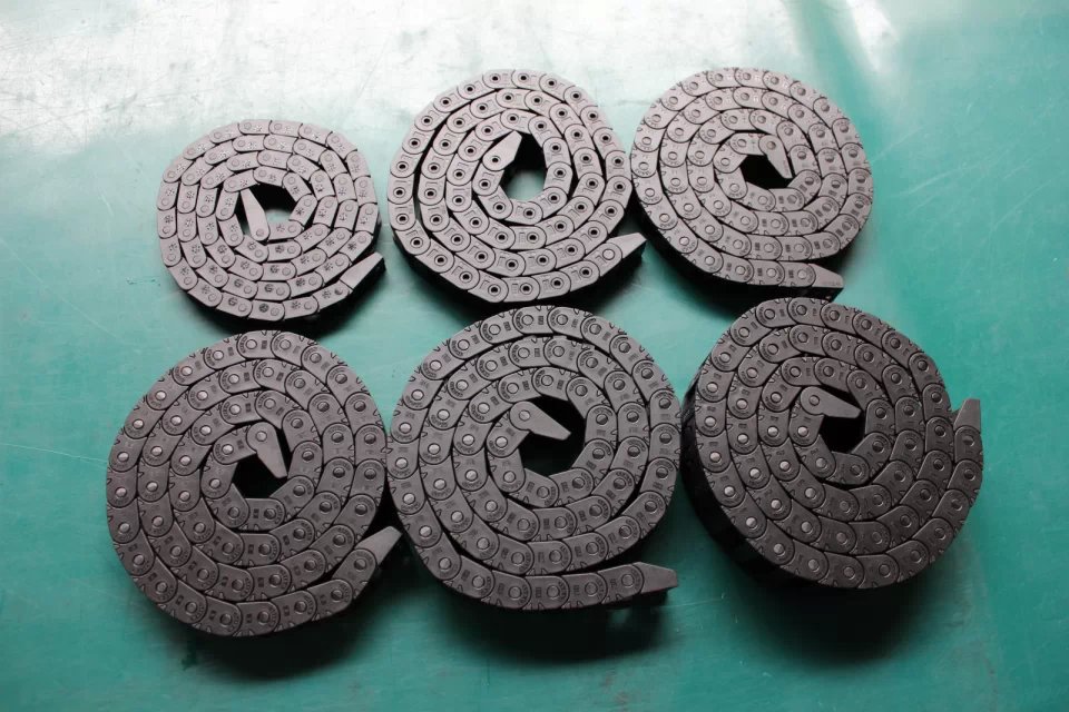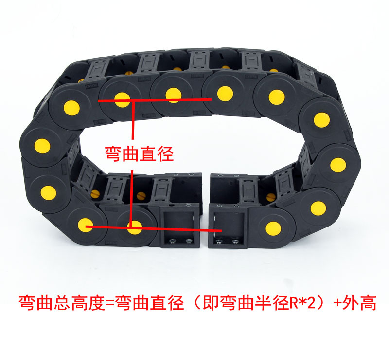本公司拖鏈采用全新增強尼龍66材質制成(尼龍料PA66:70%+增強料玻璃纖維30%)制成,具有耐磨、高強韌性等特點。質保三年,終身維護